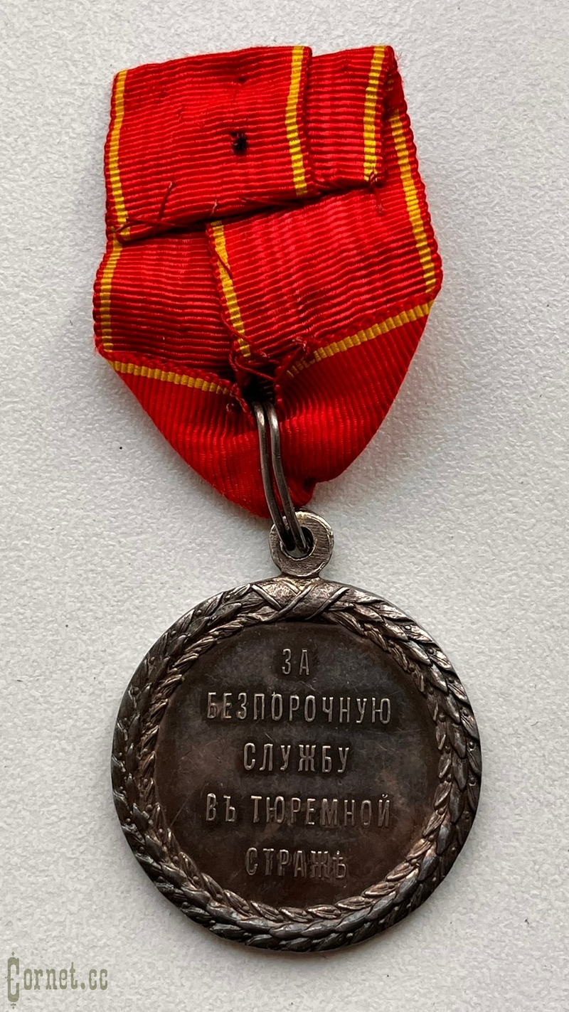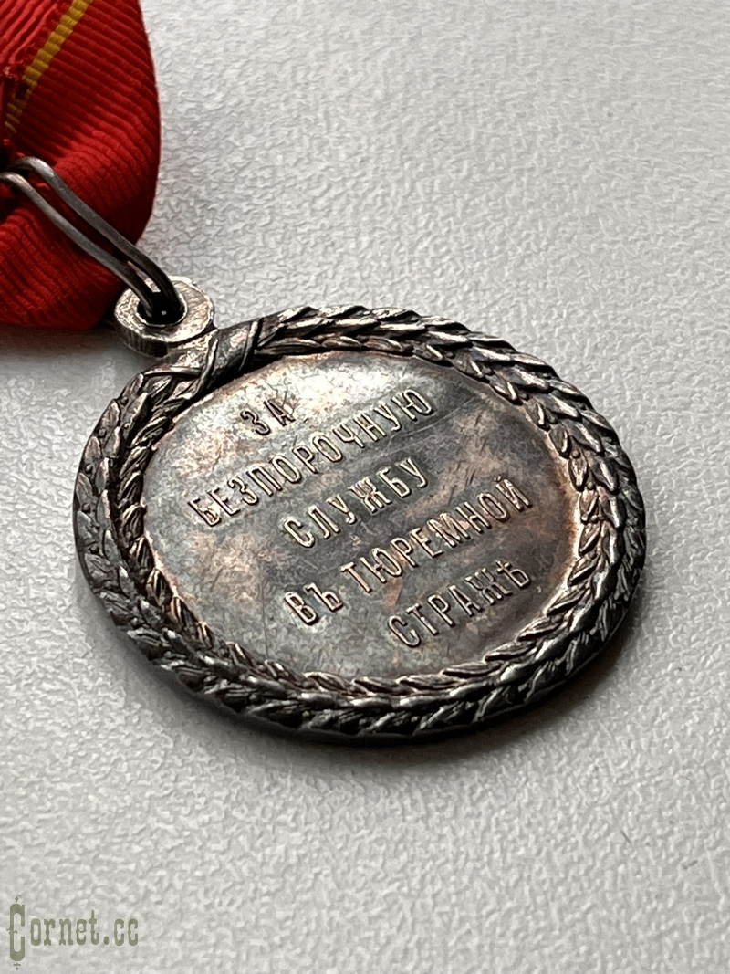 Russian Empire. Medal "For immaculate service in prison guard" during the reign of Emperor Nicholas II. Established December 3, 1887. All ranks of the prison guard (except for the wardens) were awarded for immaculate service in office for at least 5 years. Medals were worn on the chest on the ribbon of the Order of St. Anne. Extremely rare.!