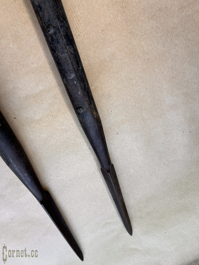 Russian Empire. The peak of the light cavalry of the 1862 model is piercing edged weapons, a type of long spear, adopted by the Russian Empire in 1862. Pika was used in Cossack, Uhlan and hussar regiments. Blows were usually delivered in the groin (front) or in the lower back (back). The total length is 285 cm, the combat tip is steel, triangular in section. Length with tube 80 cm, combat tip 14 cm. The diameter of the shaft goes from the tip to the thickening from 24 mm to 34 mm in the central part, and up to 31 mm in the shank at the tip. The shaft is painted black.