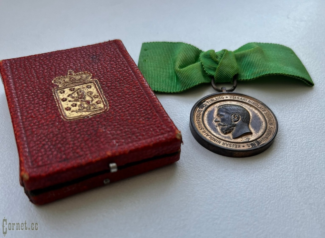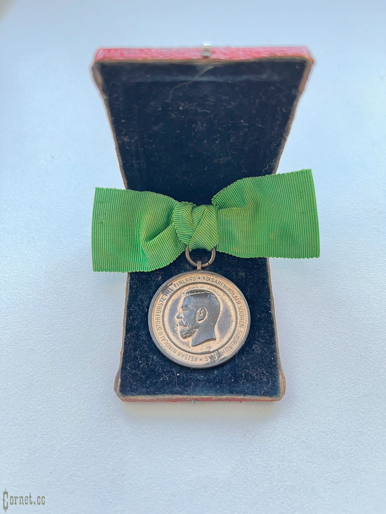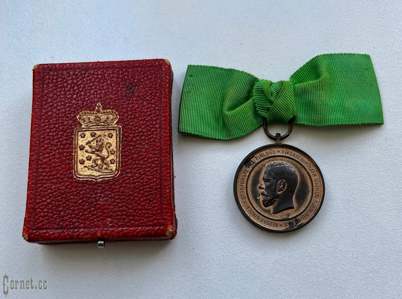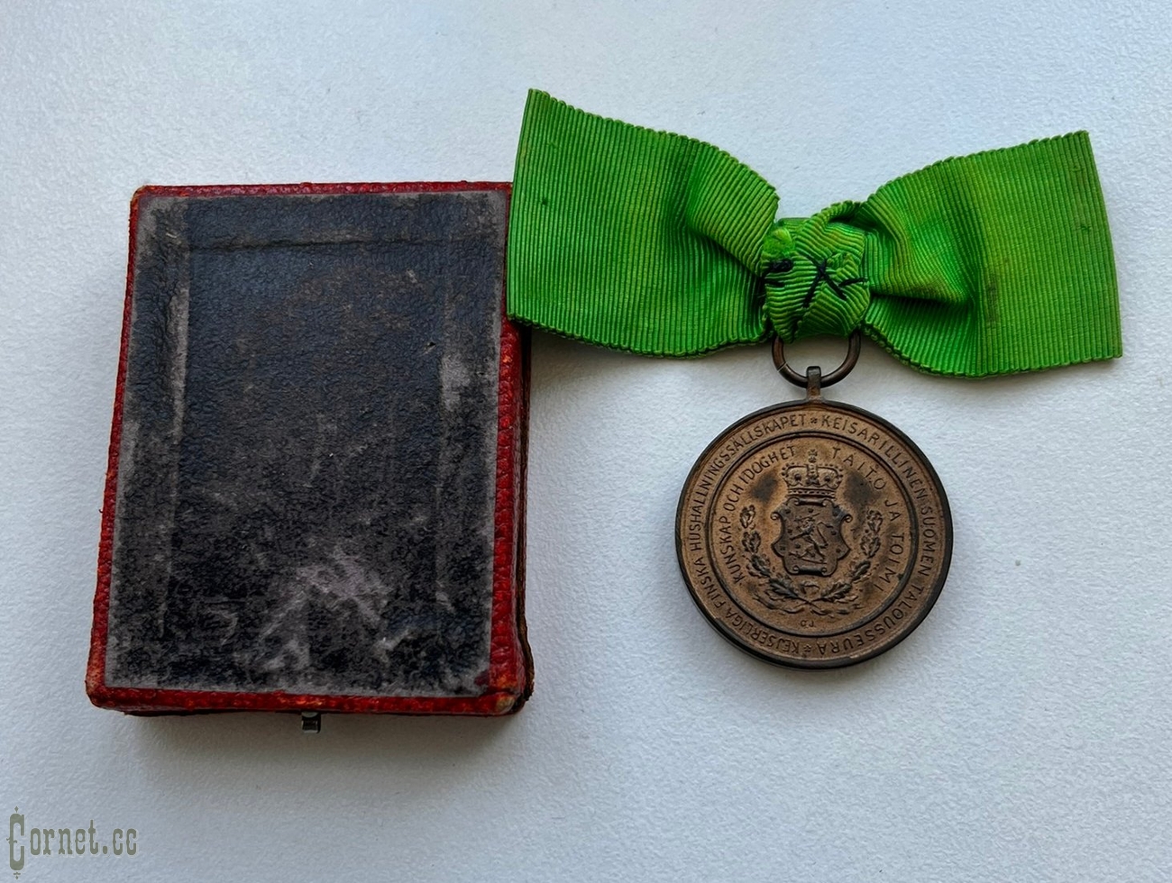 The Russian Empire is the Grand Duchy of Finland. Bronze medal for work in agriculture of the Finnish principality. With a bow (for women) in a case.