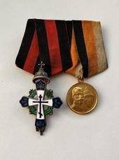 Российская Империя. Наградная колодка из двух медалей : В память войны 1812 года и 300-летие дома Романовых.